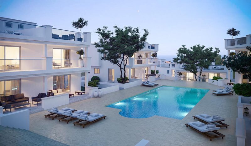 Таунхаусы Aria отличаются идеальным балансом материалов — декоративный бетон, натуральный камень и террасы из ироко. Между зданиями располагаются ландшафтные зоны, которые обеспечивают естественную циркуляцию воздуха и защищают жителей от посторонних взглядов.
